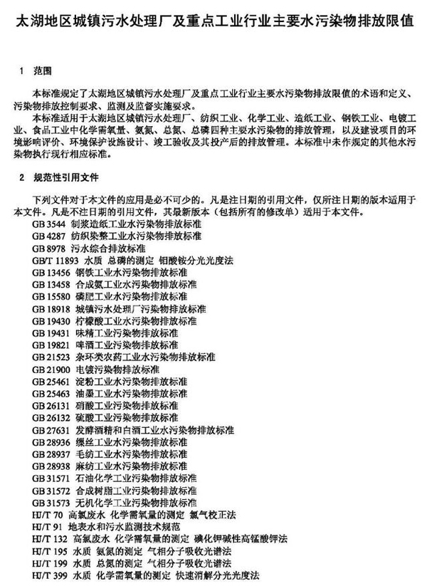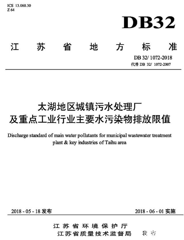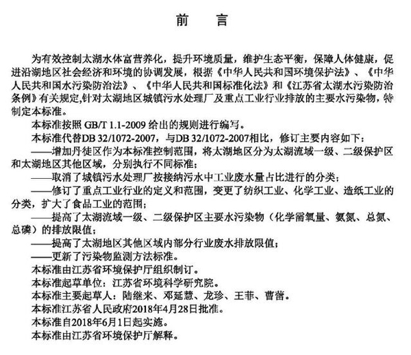 關(guān)鍵詞:太湖地區(qū)城鎮(zhèn)污水處理廠及重點(diǎn)工業(yè)行業(yè)主要水污染物排放限值(DB321072-2018)