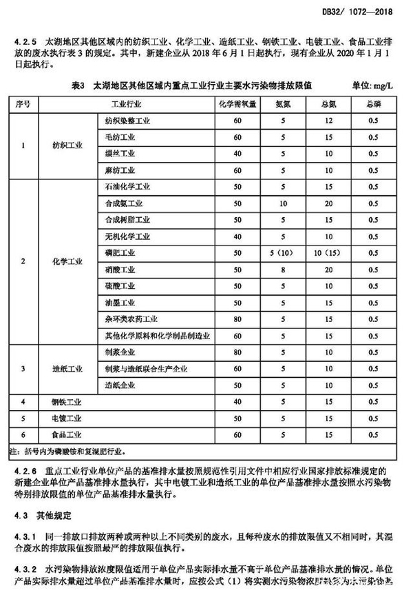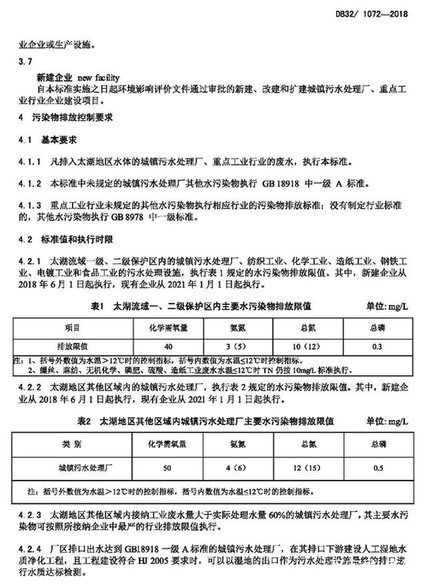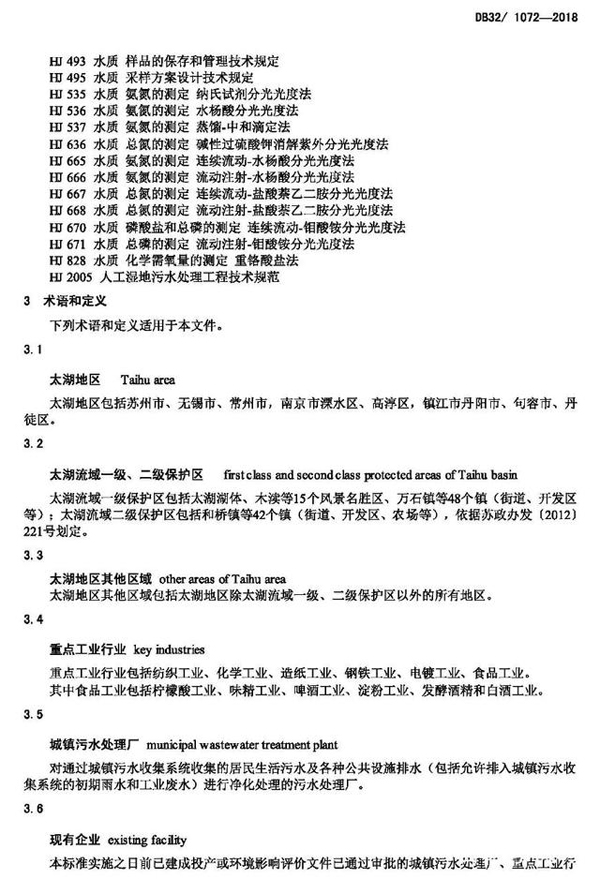 太湖地區(qū)城鎮(zhèn)污水處理廠及重點(diǎn)工業(yè)行業(yè)主要水污染物排放限值(DB321072-2018)